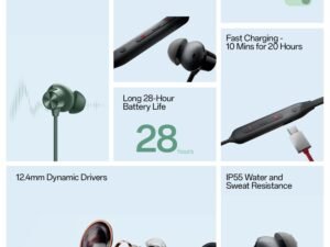 Wireless Neckband Earphones with Deep Bass & Fast Charging Compatible with OnePlus Bullets Z2, 30H Battery, Noise Isolation, Sweatproof Design-Green