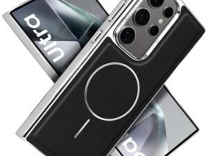 WOW IMAGINE Leather Finish Back Case Mobile Cover for Samsung Galaxy S24 Ultra 5G – Magsafe Design | Raised Edges | Ultra Slim & Lightweight | Non-Slip Shockproof | Electroplated Sides Case – Black