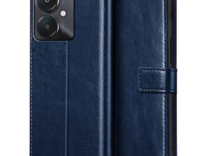 WOW IMAGINE Shock Proof Flip Cover Back Case for iQOO Z9s Pro 5G | Vivo T3 Pro 5G (Magnetic Button Flip Case | Wallet Pockets & Stand | Leather Finish | Oxford Blue)