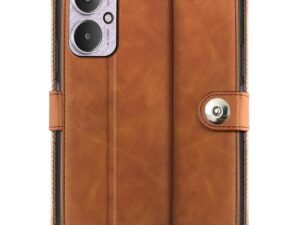WOW IMAGINE Shock Proof Flip Cover Back Case for Mi Redmi 13C 5G | Redmi 13C 4G | Poco M6 5G | Poco C65 (Designer Magnetic Button Flip Case | Wallet Pockets & Stand | Leather Finish | Alder Brown)