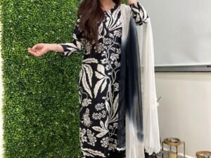 ANNI DESIGNER Women’s Cotton Blend Printed Straight Kurta with Pant & Dupatta