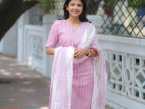 ANNI DESIGNER Women’s Cotton Kurta Pant Dupatta Set | Light Pink Ikkat Print Suit Set for Women | Kurta Sets for Woman | Pure Cotton Kurti Set | 3-Piece Festival Ethnic Dress