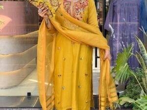ANNI DESIGNER Women’s Rayon Viscose Embroidered Pakistani Kurta with Pant Set