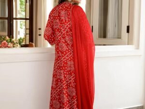 ANNI DESIGNER Women’s Rayon Viscose Straight Bandhej Printed Kurta with Pant & Dupatta