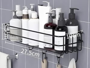 SMTG Self-Adhesive Bathroom Shelf with Hooks – Space-Saving Wall Mounted Shelf for Bathroom Essentials – Durable, No-Drill Required – Sleek Design. (Pack of 1)
