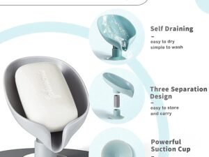 SOCATHEY Leaf-Shape Self Draining Soap Dish Holder (2 Pcs), Easy Clean Soap Dish for Shower with Suction Cup Creative soap Box, for Bathroom, Kitchen, Bathtub, Wash basins (Multicolor)