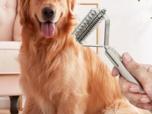 UJEAVETTE Double Sided Pet Slicker Brush Pet 2 Sided Grooming Brush for Dogs and Cats Green, Reusable Animal Hair Removal Brush for Dogs and Cats, Self Clean Pet Fur from Carpet, Furniture, Rugs