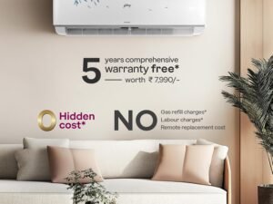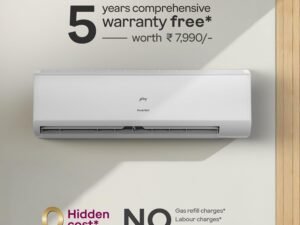 Godrej 1.5 Ton 5 Star, 5 Years Comprehensive Warranty, AI powered, 5-In-1 Convertible Cooling Inverter Split AC (Copper, 2025 Model, Heavy Duty Cooling at 52 °C, AC 1.5T EI 18II5T WZS Split 5S, White)