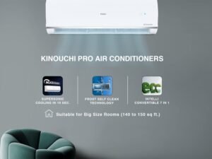 Haier 1.5 Ton 3 Star Triple Inverter Smart Split AC (Copper, Wi-Fi, 4-Way Swing, 7 in 1 Convertible, HD Filter, Cools at 60°C Temp, Long Air Throw – HSU50K-PYFW3BN-INV, White)