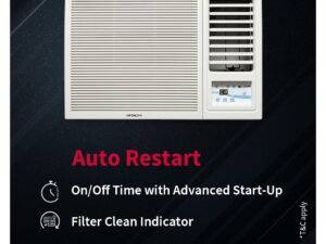 Hitachi 1.5 Ton 3 Star Window AC (100% Copper, Dust Filter, Kaze Plus, R32 – RAW318HHDO, White)