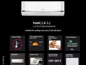 Hitachi 1.5 Ton 5 Star ice Clean Inverter Split AC (100% Copper, Dust Filter, Yoshi 5600XXL, R32 – RAS.Y518PCAISL, Dual Platinum)