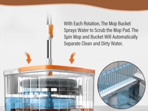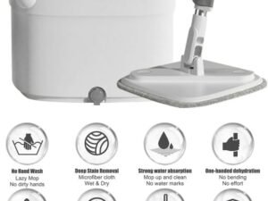 Juflix Spin SquareMop and Bucket Set with 2 microfibra ReplaceableMop Pads with Self Separation Dirty and Clean Water System, Self Wringing 360° RotatingMop-Head for Hardwood Tile Marble Floors