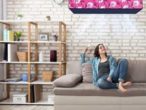 Jm Homefurnishings Polycarbonate Water & Dustproof Split Ac Cover For Voltas 1.5 Ton 5 Star Inverter, 185V Ads Floral R32, Beige (Color15)- 1 Unit