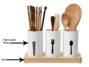 KITOME Plastic Self Draining Tableware Storage Box – Spoon, Knife, Fork, Chopstick, Cutlery Holder / Organizer Stand for Kitchen, Dining Table (White)