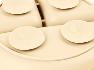 karomouj Silicone Plate with Spoon, BPA Free Baby Self Feeding Set for 6 to 12 Months Kids, Non-Toxic, Easy to Clean Dishwasher Safe and Lightweight Sanction Base (Multicolor, Pack of 1)