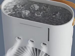 Lapras ???? ?????????? ???????????????? 180° Adjustable Dual-Head Tower Fan with Ice Mist Cooling, 3 Speed Settings, Remote Control, and Ambient Lighting – Ideal for Customized Comfort., Blue