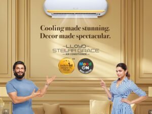 Lloyd Stellar 1.5 Ton 5 Star Wi-Fi Inverter Split AC (6 in 1 Expandable, Mood Lighting, In-Built Air Purifier, Direct Voice Command, Copper, White/Golden, GLS18V5FWGST)
