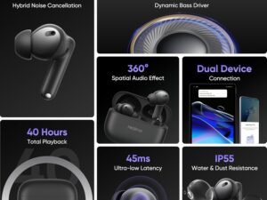 (Refurbished) realme Buds T310 Truly Wireless in-Ear Earbuds with 46dB Hybrid ANC, 360° Spatial Audio, 12.4mm Dynamic Bass Driver, Upto 40Hrs Battery and Fast Charging (Vibrant Black)