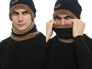 PinKit Men’s and Women’s Knitted Fur Lined Winter Neck Scarf Beanie Cap Set (Black) – 2 Pieces