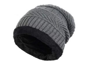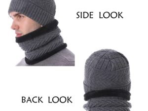 PinKit Woolen Beanie Cap Scarf Set Warm Knit Cap Air Proof Inside Fur Thick Fleece Lined Winter Hat & Neck Warmer (Mufflar) Combo for Men & Women-Grey