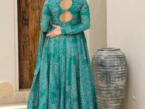 Pinkmint Women’s Bandhani Print Flared Anarkali Muslin Kurta Set with Pant & Stylish Dupatta Ethnic Long Sleeve Dress Suit Set