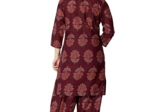 rytras Women’s Pure Cotton Printed Straight Kurta Set with Palazzo Pants – Ethnic Wear, Maroon