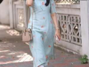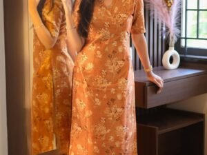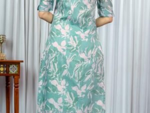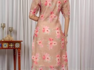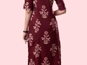 Sun Fashion And Lifestyle Women’s Chanderi Stitched Printed Long Kurta Women