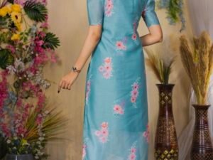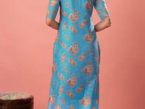 Sun Fashion And Lifestyle Women’s Chanderi Stitched Printed Straight Kurta (KT53_SkyBlue)