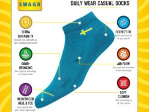 SWAGR Ankle Socks for Men & Women, Multicolor, Pack of 5, Free Size