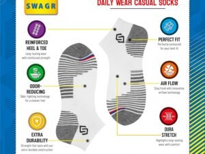 SWAGR 6 Pairs Sports Socks for Men Ankle Length Athletic Running Socks, Pack of 6, Free Size