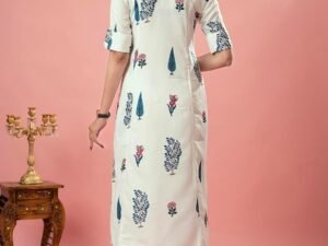 Sun Fashion And Lifestyle Women’s Reyon Stitched Printed Princess Cut Aline Long Kurta For Women (KP25_Whitev1)