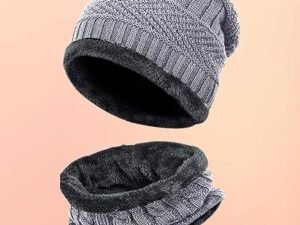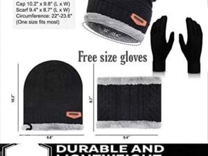 TRUFLAIR Winter Knit Beanie Cap Hat Neck Warmer Scarf and Woolen Gloves Set for Men & Women (3 Piece) Ultra Soft Unisex Woolen Beanie Cap Plus Muffler Scarf Gloves Set