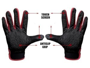 Touchscreen Winter Gloves with Anti-Slip Grip, Black and Blue Trim, Mesh Pattern Design