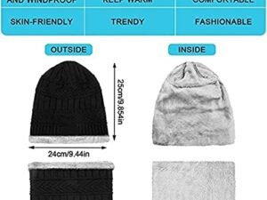 TRUFLAIR Winter Thick Fleece Lined Beanie Woolen Cap Hat, Neck Scarf and Touchscreen Gloves Set Cap for Men Women(3 Set) Black