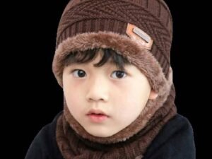 VAGMI Winter Woolen Warm Unisex Beanie Knit Skull Hat with Scarf Set for Men & Women Premium Cap – Brown (2 Piece)
