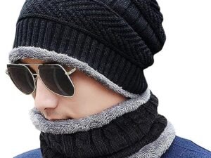 ViiStaAr Woolen Winter Cap for Women and Men with Neck Muffler Warm | Knit Beanie Cap Hat Neck Warmer Scarf Set for Women (2 Piece Set)