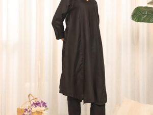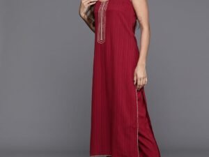 Varanga Women’s Violet Strap Kurta with Tonal Bottom & Printed Dupatta – Round Neck, Side Slit Design, Stylish & Comfortable