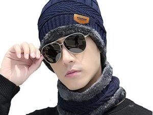 Winter Woolen Beanie Cap Scarf (Soft Fur Inside) and Touch Screen Gloves Set for Women and Men Winter Cap | Winter Cap for Men | Winter Woolen Cap for Men | Winter Cap