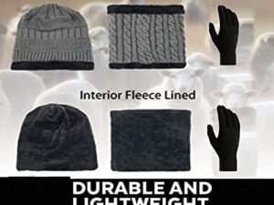 Winter Knit Beanie, Hat, Neck Warmer Scarf and Woolen Gloves Set – Skull Cap for Men & Women (3 Piece)