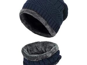 Winter Knit Beanie Cap Hat Neck Warmer Scarf and Woolen Gloves Set for Men & Women (2 Piece)