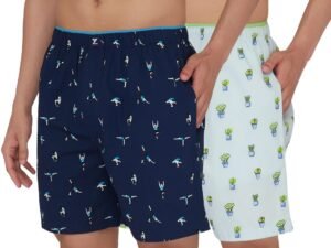 XYXX Men’s Splash 100% Super Combed Cotton Regular Fit Printed Antibacterial Trunks with No Marks Waistband (Pack of 2)