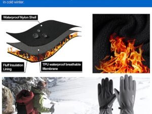 ZIBUYU Winter Gloves for Men Women Bike Riding Touch Screen Finger Microfiber Anti-Slip Design Windproof Waterproof Snow Ski Hand (Grey) 3 PCS