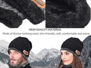 Zenics Winter Cap Woolen Beanie Hat Neck Warmer and Touch Screen Gloves set for Men and Women Thick Warm Slouchy Beanies Hats Knit Skull Stylish Caps for Snowboarding and Ice