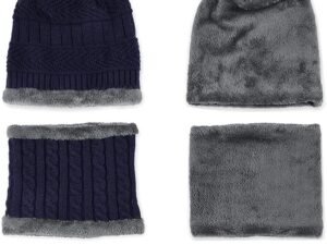 Zibuyu® Winter Cap for Men, Women Warm Knitted Cap with Neck Gaiter Knitted Scarf, Warm Winter Cap Scarf Set Beanie Cap Neck Warmer Scarf Winter Cap and Neck Warmer (Navy Blue)