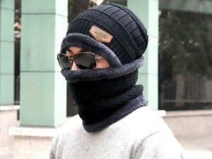 Glammore Knitted Beanie Cap with Neck Warmer: Wool Blend, Fur Lined Winter Hat & Scarf Set – Full Size, Stretchy, Ideal for Indoor & Outdoor Activities, Unisex