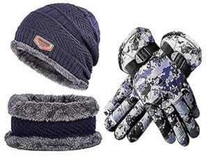 GLAMBIZ Winter Knit Beanie Cap Neck Warmer Scarf and Army Gloves Set Skull Cap for Men Women/Winter Cap for Men(Assorted)