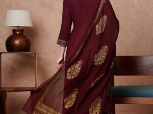 GoSriKi Women’s Rayon Blend Anarkali Solid Kurta with Pant & Dupatta