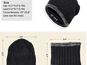 HIVER Winter Beanie Cap Scarf Set Warm Knit Cap Thick Fleece Lined Winter Hat & Scarf for Men Women
