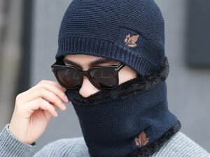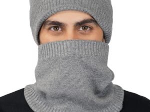 iSWEVEN Mens Womens Woolen Winter Cap with Neck Warmer Scarf Set, Cold Weather Beanie Hat Unisex Free Size