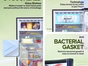 Haier 237 L, 3 Star, 8 In 1 Convertible, Twin Inverter Technology, Bottom Mounted Frost Free Double Door Refrigerator (HEB-243GB-P, GE Black)